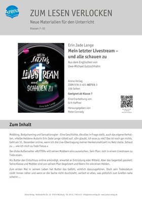 " 'Mein letzter Livestream' ist ein hartes Buch, das reichlich Stoff und Themen zum Nachdenken bietet: Mobbing, Bodyshaming, die Flüchtigkeit von Online-Freundschaften, Zivilcourage und Mut, gegen den Strom zu schwimmen." Dominique Salcher, Münchner Merkur